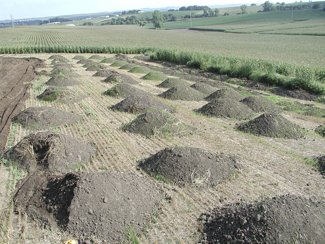 Here you can see the soybean stubble has been pulled into the nightcrawler middens (piles).