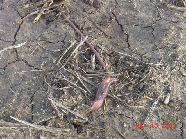 Some people thought that it was the anhydrous amonia or the herbicides/insecticides that killed off the nightcrawlers/earthworms - it was NOT. Since the worms eat the decaying residue