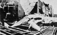 Two fires of note happened the following year. The Fred Petersen Garage, in the two-story brick building owned by Mrs. George Dethlefs Sr. (located on the southwest corner of Fifth and Main in block 9), the Kruse Hatchery, Basement Cream Station, and Geo. Jones' Place were all destroyed and only the northwest corner remained standing. Also lost in the December 9, 1943 blaze were 23 cars, the Des Moines-Springfield Bus and a Univeristy of Iowa Hospital ambulance. Hugo Ress and Merle Voss had worked on the bus that night until nearly 4 a.m., and the night marshal had made an inspection at 4:30. The second floor had stored 40,000 empty 30-Ib. egg cans belonging to W.B. Parrott Co. The hatchery building operated by Clarence Grundmeier was badly gutted. The Dethlefs family living across the intersection turned in the alarm.