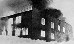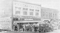business area would be consumed. All business houses on the rest of Main street were emptied with the help of citizens; the firemen, wrapped in wet quilts and blankets, were able to contain the Reinhold fire and the rest of the area was saved.