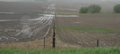 Above is a no-till field where major tillage was done last fall and this spring to provide drainage of a low area. The water standing here is only from the rain event.