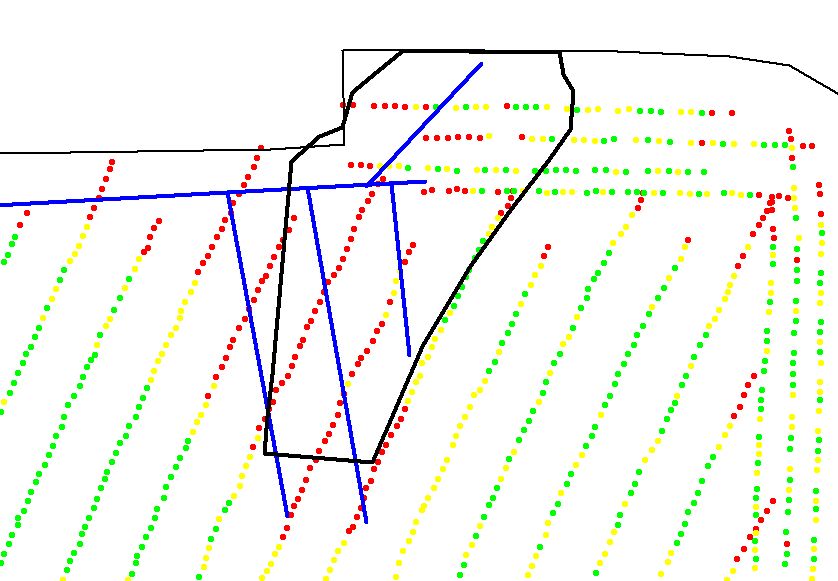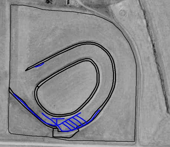 The blue lines are the tile I trenched in during the fall of 2017 and the black polygon is the area I hauled soil this fall.