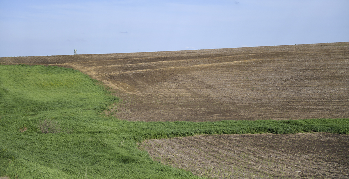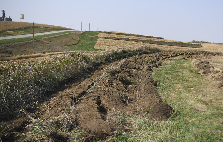 In our case on this hill an offset terrace had to be built, which makes it impossible to farm with the present-day huge planters, sprayers, and combines.