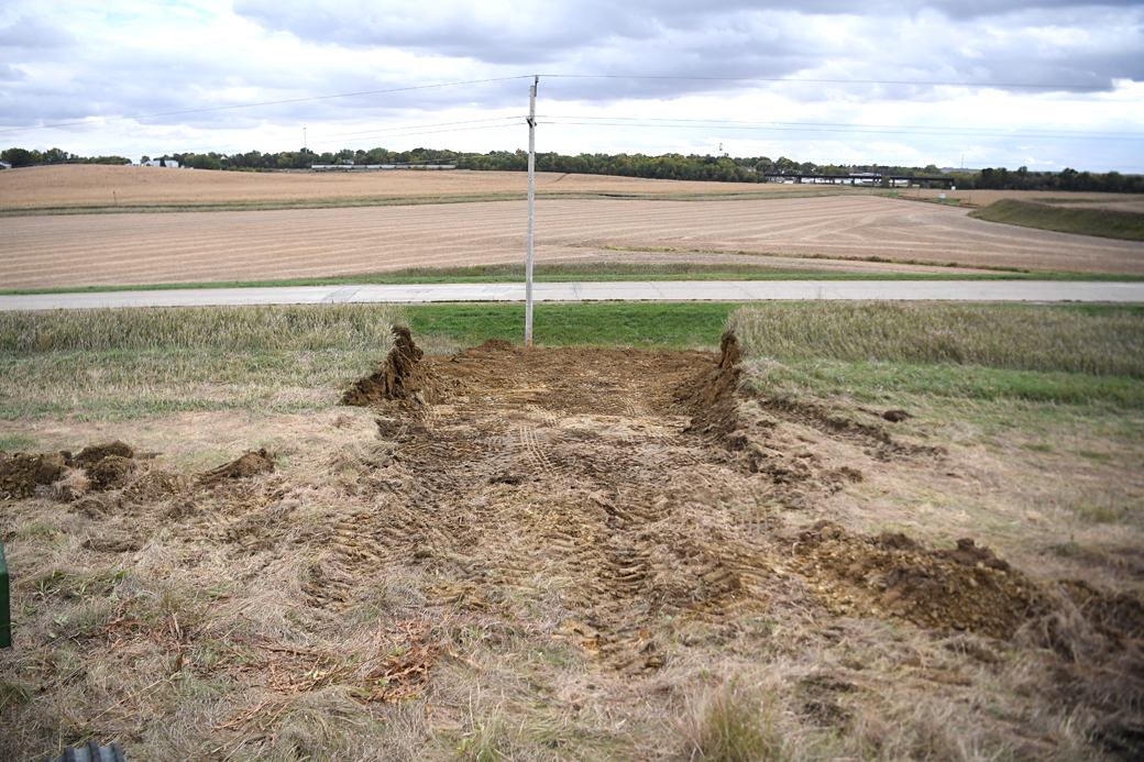 Subsoil had been previously borrowed from this sidehill back in the 1960s when the county wanted to reshape the road and fill in the valley between the 2 large hills in that road.