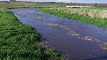 1977 was the third year of drought. The picture to the left is of the Nishnabotna in June. By now we were breaking some old "Dust Bowl" day records. I don't recall which ones exactly. |