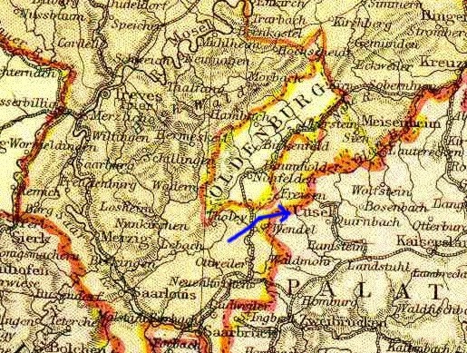Cusel (you will find Cusel -- now Kusel, Germany at the bottom of the map to the lower right of an area called