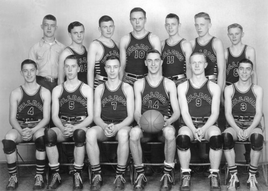 Back row, left to right: Vincent Lyden, Howard Schumann, Norman Arp, Robert Lake, Orrin Welch, Clark Herschman, Wilbur Kartsen
