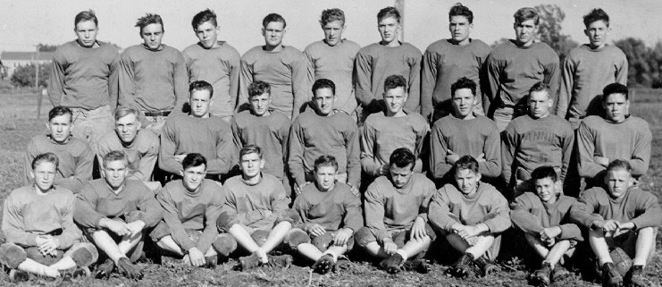 Nickum, Berdette Schroeder, Dick Ohm, Frank Bliefert, Wally Kruse Second Row: Elvin McConnell, George Musfeldt, Lyle Arp, Gene Strathman, Jim Rowedder, Dick Morrell, Robert Kruse, Wayne Schrum, Francis Zerwas Front Row: Ludwig Hammer, Don Ramsey, Jack Ramsey, Labert "Bud" Stahl, Bobby Kuhl, Lee Himes, Carl Carlson, Harold Christie, LeRoy Rowedder |