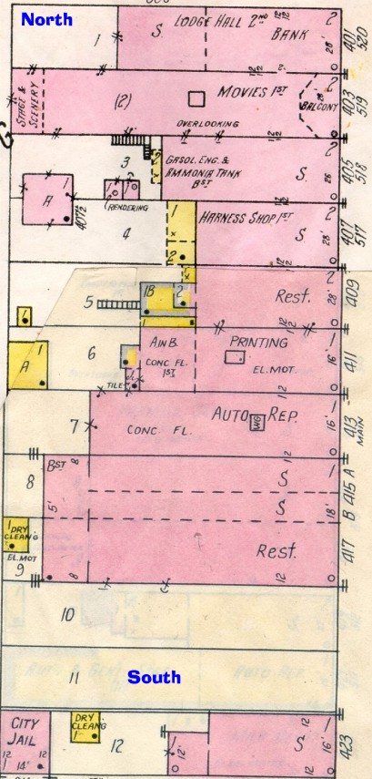 Below: a 1927 Plat of this block --- Main Street on the right side.