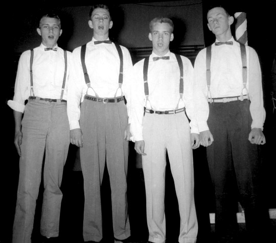 Darlys (Vollstedt) Bean brought a whole box-full of scrap books and pictures to me several months ago to go through and scan. This is just one of many fun pictures she has which shows a boys' quartet from 1953-54.