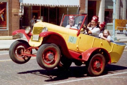 This homecoming parade picture shows Dr. John Hornberger in his Shriner car. I'm sure most of you remember seeing this car jumping around in the school parades. Lyle "Red" Arp MHS 1940 is on the passenger side.