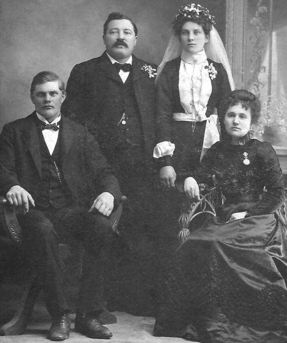 1902 bride, groom and attendants