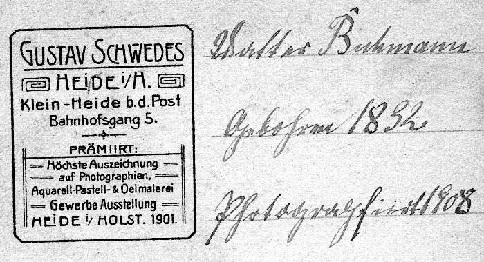 Below is a scan of the back side of the picture shown above. The picture was taken in Heide, Holstein, Germany.