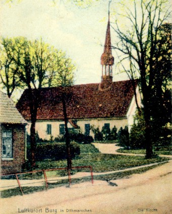 Glass picture showing Church in Burg, Germany in the region of Dithmarschen