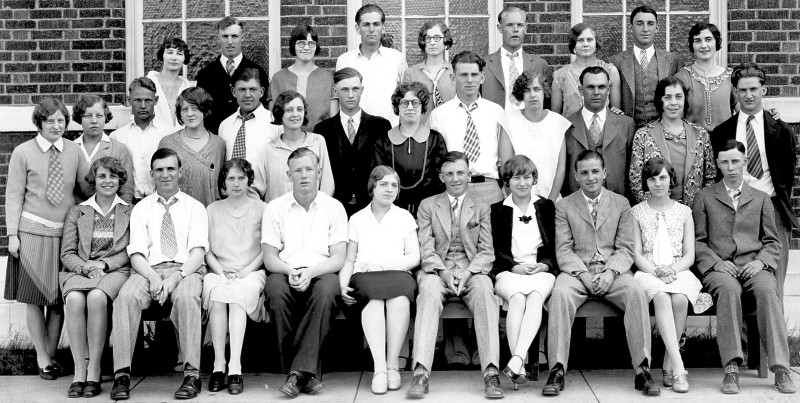Wyatt, Joe Lamp, ?----?, Walter Hass, ?----?, Howard Signall, Eileen Signall Second Row: ?----?, Blondina Grimm Karsten, Carl Hass, Mabel Guth, Harold Martens, ?----?, Wilbur Anthony, ?----?, Robert Wiese, ?----?, Walter Sonksen, Alvera Claussen, Otto Lamp Front Row: Arlene Sinn, Ray Frahm, ?----?, ?----?, ?----?, Lester Genzen, ?----?, Sam Livingston, ?----?, ?----? |