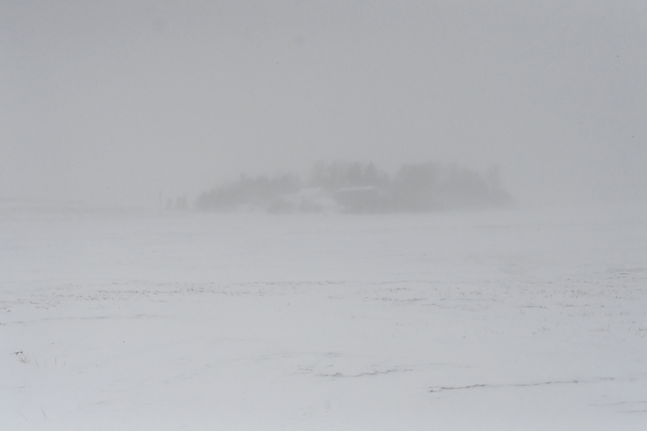 The sun would occasionally peek through the airborne snow.