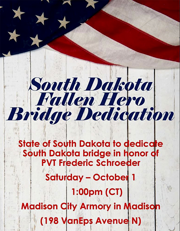 The American Legion Post 97 in Egan, South Dakota, is named in honor of Private Frederic C. Schroeder.