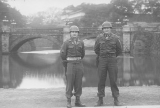 While the surrender terms were being signed aboard the U.S.S. Missouri, the First Calvary Division landed at Yokohama. On September 8, 1945, the First Calvary went into Tokyo to stand honor guard for General Douglas McArthur at the American Embassy in Tokyo for the Flag raising ceremony. They were assigned to the honor guard at the Imperial Palace grounds during the Occupational duties in Tokyo.