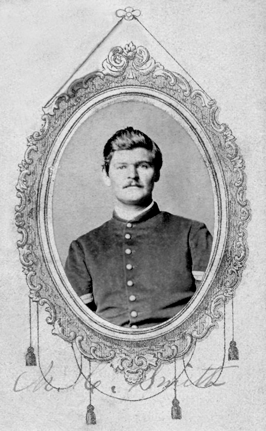 Myron Chamberlain Smith passed his boyhood and youth at Elmwood, Illinois, enlisting at the age of nineteen in Company I. 77th Regiment of Illinois Volunteers. He was mustered into the United States service September 2, 1862, at Peoria, Illinois. A fall campaign was spent in Kentucky. Left for Vicksburg, December 20 under Sherman. Was at Arkansas Post January 1, 1863, and spent the rest of the winter with General Grant's Army at Young's Point, opposite Vicksburg. Left for the Siege of Vicksburg, April 1863. The fall of 1863 was spent in New Orleans and other points in Louisiana; crossed the gulf and spent most of the winter in Texas, returning to New Orleans, and took part in the Red River Campaign. He took part in the Investment and rapture of Forts Gaines and Morgan, on Dauphin Island and was there when Farragut passed the forts with his fleet on the way to Mobile August 5, 1864. In March 1865, the troops were again in motion to finish the capture of the defense of Mobile, Alabama. Lee's surrender soon followed and M.C. Smith was mustered out at Mobile, July 10, 1865, on account of general orders, which completed his three-year's service. After the war he moved to Des Moines County, Iowa, near Morning Sun, where he was engaged in farming. On October 1, 1868, he was united in marriage to Amelia J. Lotspeich. To this union were born six children. One son, Frank E. preceded him in death.
