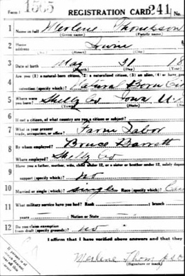 Merlene J. Thompson, the son of Jacob and Gusta (Strand) Thompson and was born May 31, 1896, in
