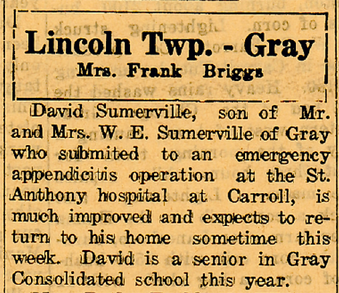 By command of Major General Williams. Lt. Summerville is the son of Mr. and Mrs. Wm. J. Summerville of near Gray, Iowa, and since this citation has been commissioned a First Leiutenant and Squadron Leader. Flight Lt. David K. Summerville, son of Mr. and Mrs. Wm. Summerville, who has completed the required number of missions over enemy territory, came home last Thursday evening for a 30-day furlough. He is a bomber pilot and squadron leader, stationed in England. Lt. Summerville Completes More Than Score of Bomber Missions An Eighth AAF Bomber Station, England. First Lieutenant David K. Summerville recently received congratulations from his adjutant, First Lieutenant Melvin J. Kieffer, upon completing more than a score of bomber combat missions over Nazi Europe. Lieutenant Summerville is the pilot of a B-17 Flying Fortress, and is a veteran of many of the Eighth Air Force's huge daylight bombing assaults against the enemy's military and industrial targets. He has participated in missions against Berlin, Hamburg, Schweinfurt and Munich. Flying through terrific anti-aircraft barrages and vicious enemy fighter attacks, Lieutenant Summerville has used his superior airman-ship many times to reach the enemy's targets and bomb them successfully. His skill and devotion to duty has made it possible for him to bring his aircraft and crew safely back to England though his ship was badly crippled. He has recently been decorated with the Distinguished Flying Cross, for his extraordinary achievement while serving as the pilot of a Flying Fortress. His great courage and skill have been an inspiring example to his fellow flyers. His parents, Mr. and Mrs. William E. Summerville, live at Gray, Ia. Prior to his entry into the Army Air Forces in 1942 Lieutenant Summerville was a student at the University of Iowa. Manning Monitor articles ------ 1945 Lt. David Summerville of the Army Air Corps came from Columbus, Ohio Saturday night to spend two days with his parents, Mr, and Mrs. Wm. Summerville and sisters, Mrs. Alfred Spies and Evelyn Summerville. A son was born Sunday, Febr. 18 to Mr. and Mrs, Alfred Spies. Lt. Summerville Accepts Job With Pan-American Mr. and Mrs. W. E. Summerville received word recently that their son, Lt. Dave Summerville, had accepted employment with the PanAmerican Airways. Lt. Summerville, who at present is an instructor at Hendricks Field, Sebring, Floridia, waiting his further orders, was one of 123 chosen for the job out of 1,500 applications. Following a request from the government for the service of many pilots, he went to Tampa, Fla., for an interview and to present his credentials. He later received a telegram from Washington, D. C., stating he had been accepted. Of the twelve men eligible at Hendrichs Fields only three men were accepted. He will be stationed at Miami, Fla., for three months training and will probably fly a C-54 Sky Master or a Constellation. He expects to be home on leave before being transferred from Hendricks Field to Miami.